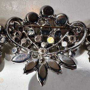Reference # 7571 Page 108 on the “Is It Juliana” website. The reference # only shows the brooch but these earrings are 100% identical. The brooch is missing 3 small rhinestones on the left side & 4 of the small rhinestones on the right all at the top of the brooch. There are scratches from wear as with any vintage item.