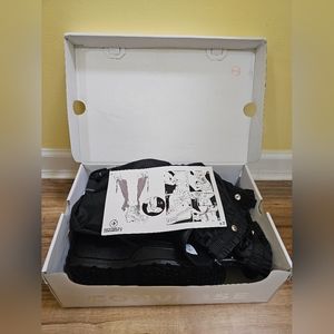 The Chuck 70 De Luxe Wedge is the brand's first collaboration with Brooklyn designer Martine Ali and makes the fan favorite into a modular statement piece. The edgy, limited-edition wedge design features a leather upper and a removable gaiter that lets you go from fashion-forward high-top to bold knee-high style in an instant. The versatile construction is paired with contrast stitching, lace closures and hardware snap details that give it an elevated, subversive aesthetic. The signature ankle patch is rendered in tonal-debossed leather, while custom tone-on-tone Martine Ali branding rounds out the uniquely squared-off silhouette.