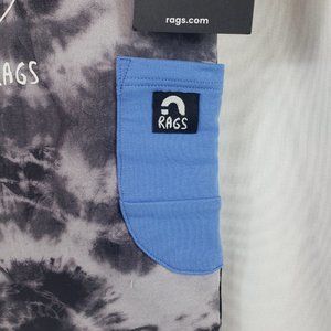 New, RAGS Black and Gray Short Sleeve Tie-Dyed Shift Dress with Blue Trim
