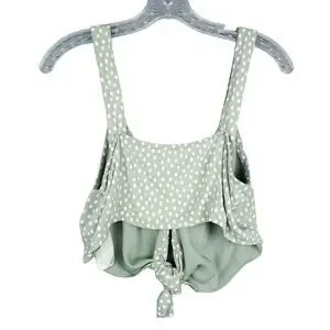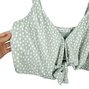 Abercrombie & Fit Mint Green White Polka Dot Tie-Front Crop Top Size Medium