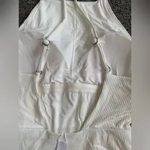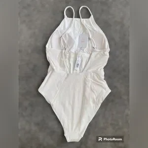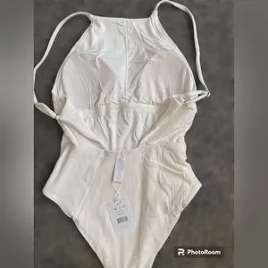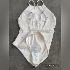 It's perfect for any woman looking to update their swimwear collection. The swimsuit features accents on the straps and has a beautiful ribbed texture. This new with tags swimsuit is a must-have for your next beach vacation.