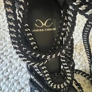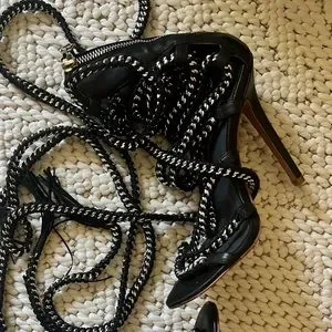 Black leather with silver chain details that lace up to give you that super sexy chic look.