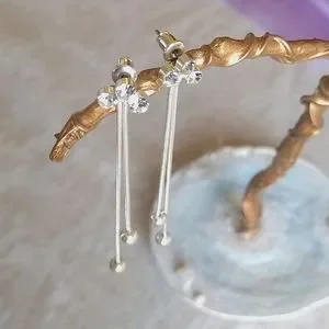 Silver colored Dangly earrings with three crystals/faux diamonds at the top. In great condition.