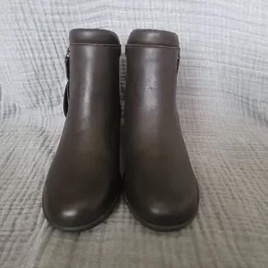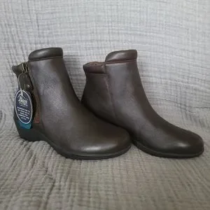 New with tags, Bass Lite Mercedes go-to comfort boots/booties in brown. Size 5.5, brown leather (upper), balance man made materials. Pillowsoft, lightweight, padded and contoured footbed adds extra cushion for improved shock absorption and reduce body stress.