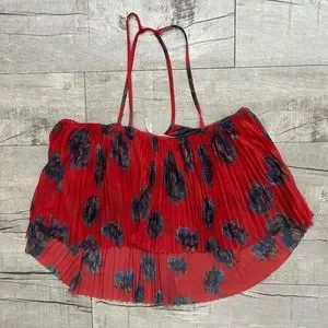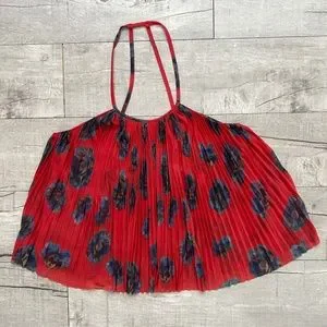 Kimchi Blue Urban Outfitters Red Pleated Floral Strappy Halter Back Tank Top M