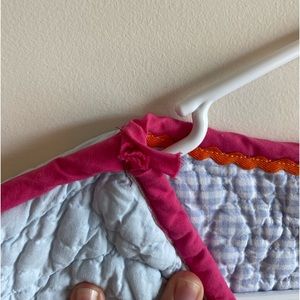 NO SIZE LISTED on vest but my guess would be a size small. More than willing to provide measurements upon request. Reversible to a light blue moon night quilt. Small snag on the shoulder.