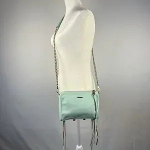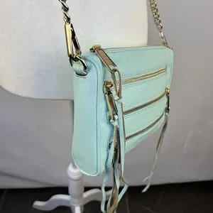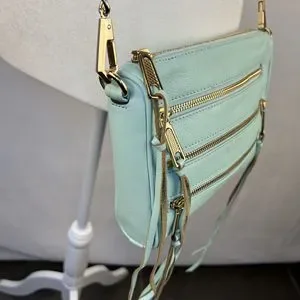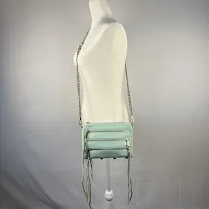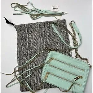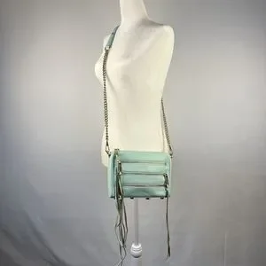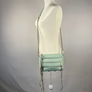 Rebecca Minkoff Crossbody Mini Bag Leather Purse Studded 5 Zip Mint Clutch Tote
