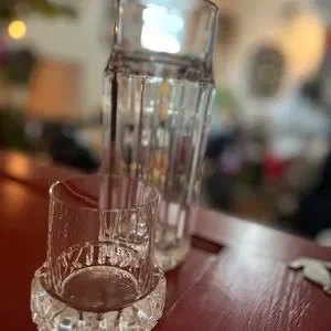 Tiffanys Atlas numeric bedside carafe and glass vintage set. Collection is named for the Atlas clock out side the store on 5th Ave. Beautiful heavy crystal that will great on your nightstand or really anywhere.