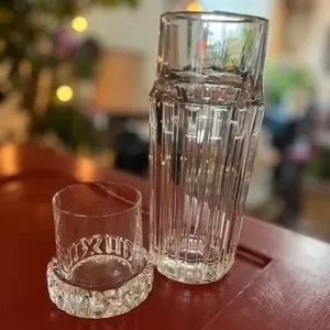 Tiffanys Atlas Numeric vintage decanter and glass set