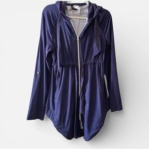 This is a zip-up mockneck jacket with hand pockets and dropped shoulders for a roomier fit. It's made from super soft and textural teddy fleece. Adjustable inner drawstring hem. Slightly cropped.