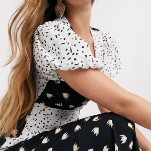 Rahi SZ S Black/White Confetti Patchwork Puff Sleeve Maxi Dress