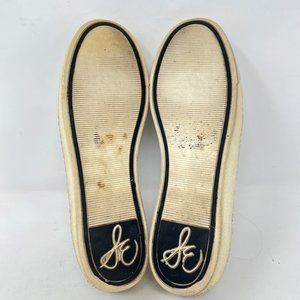 Sam Edelman calf hair painted leopard / cheetah slip on shoes. They are in overall good condition with the exception of the bonded leather accent areas. The back strip up the heel on the right shoe is disbonding and there are some areas of light wear on some of the edges.