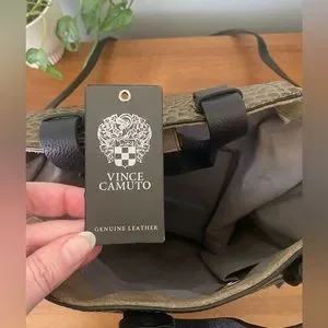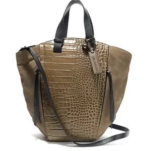 Vince Camuto Croc Embossed Suede Mavis Tote in Army / Olive Green Khaki Brown Crossbody