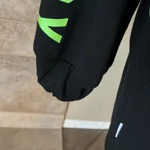 Worn once, like new condition!! Awesome long hoodie, diagonal zipper in front. Lime green inside hood and pockets. Also lime green graphics!!