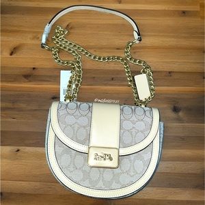 Coach Signature Jacquard Alie Saddle Bag in Stone Ivory NWT