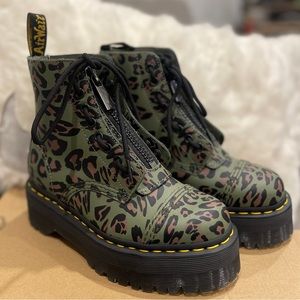 DR. MARTENS SINCLAIR DISTORTED GREEN LEOPARD PRINT PLATFORM BOOTS! Brand new in box! Zipper closure! Sold out in ALL sizes online.