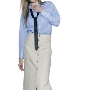 ZARA DENIM MIDI SKIRT WITH BUTTONS ECRU SIZE XS | 0108/226/712