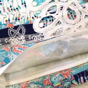 Lilly Pulitzer Worth shift dress is in EUC. A classic Lilly shift silhouette in “Multi Sailor Patch”, nautical inspired patches of seashells, fish and nautical ware. Crochet lace detailing down the front and at neckline. Fully lined with side pockets and hidden back zipper. Dress and print has a great vintage 60’s vibe and measures 18” from underarm to underarm and 35” from shoulder to hem. Smoke free home.