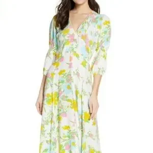 Faithfull maud floral midi dress with 3/4 sleeve in ilona floral print. Brand new with tags