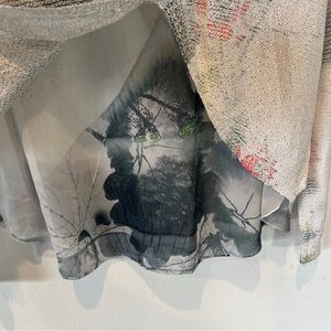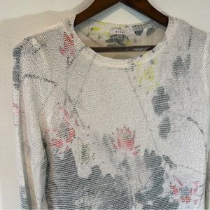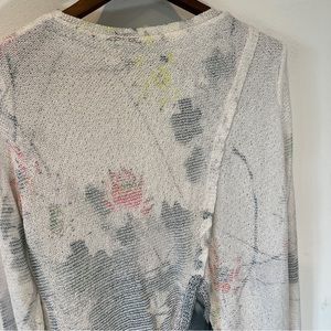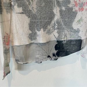 Sioni Lightweight Open Knit Watercolor Floral Layered Long Sleeve Sweater