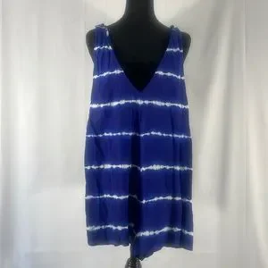 Blue, white Tie died jumper, shorts, Cover up, Bathing suit cover, casual, V neck, extra snap on back, lightweight, free,