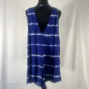 Blue, white Tie died jumper, shorts set onsie, Cover up, V neck,small