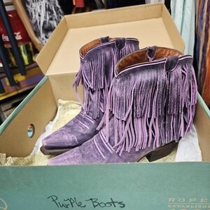 Roper boots! 7.5, wore in the house twice. These are a beautiful royal gorgeous purple/lavender. See pictures for all details. Paid $130. Selling for $79! But please send me an offer if you just really love them! Bundle and save 10%! If u have any questions please just write me. Ann Marie
