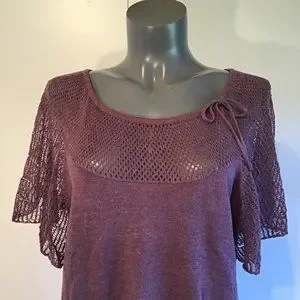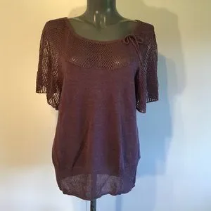 Cute knit top, linen/acrylic blend, short bell sleeves in a pretty purple colour.