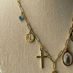 Super antique saints charms on an 18kt Gold plated 18.5” chain