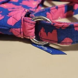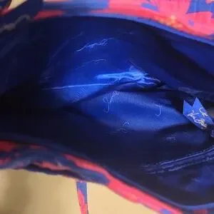 The fabric is so nice and comfy. Colors are popping pink and royal blue with a royal blue interior lining.