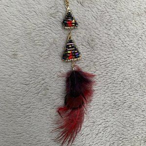 Express Layered Golden-Toned Beaded Triangles and Feather Necklace