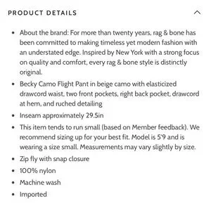 NEW Rag & Bone Womens Large Becky Camo Flight Pants Beige Camouflage NWT $350
