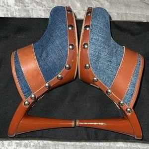 Dolce&Gabbana clogs 4” heels excellent condition denim n leather size 37 gorgeous pair has little scuffs on it .