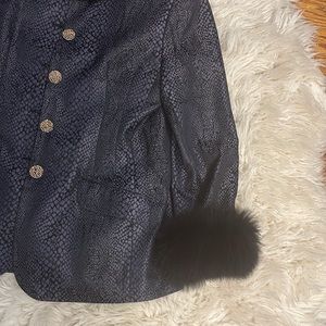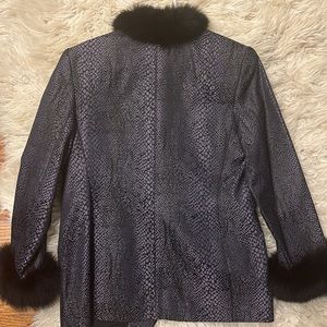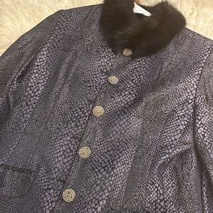 Red Signature Fur Trim Jacket/Blazer with Purple Snake Print and Bedazzle Buttons, Super Rare