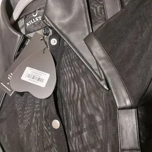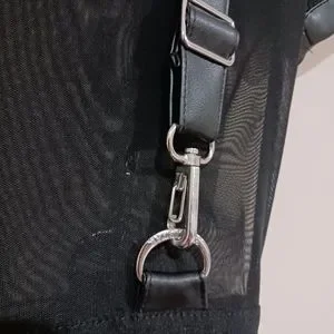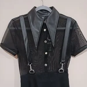 Faux leather suspender straps and collar