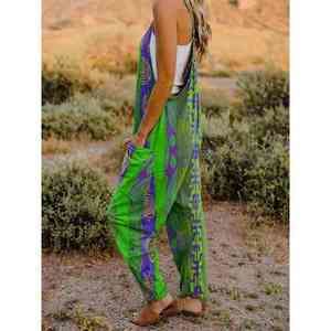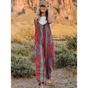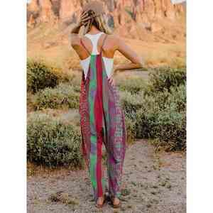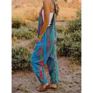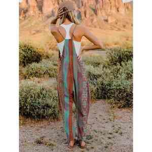 Full Size Printed V-Neck Sleeveless Jumpsuit