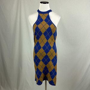 NEW UO Urban outfitters argyle knit sweater dress blue tan halter size S