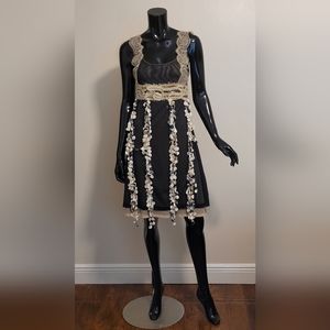 Absolutely gorgeous three layered skirt dress, with string of petals appliqué along the lenght of the skirt.