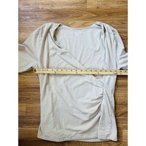 Soft Surroundings Alyssa Knit Top Size XL Beige Surplice Faux Wrap 3/4 Sleeve