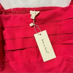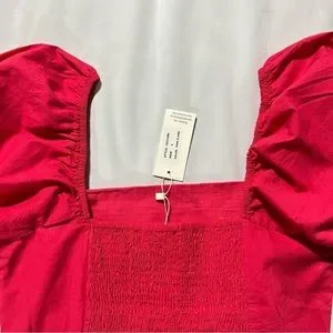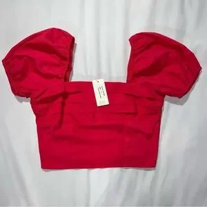 NWT Sim & Sam Puff Sleeved Crop Top Square Neck Size Large in Color Fire Pink
