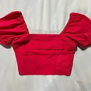 Sim & Sam Square Neck, Puff Sleeve Crop Top. Size Large. Adorable fitted corset/whimsy look and scrunched back. Fire Pink color. Dress up or down 🌺