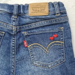 Levi's Blue Denim with Red Hearts Shorty Shorts Girls Size 6X Regular