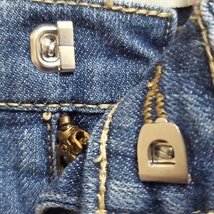 Levi's Blue Denim with Embroidered Red Hearts Shorty Shorts