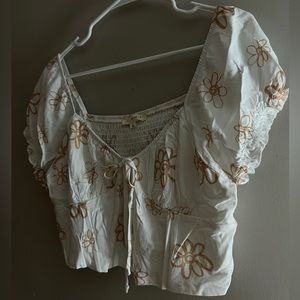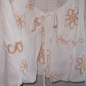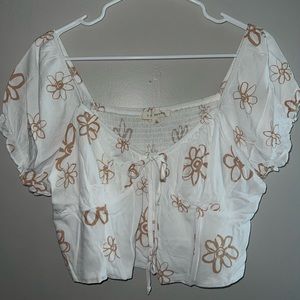 White top with brown flowers and tie in front size L from Pacsun completely new.