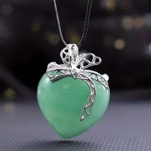 Green Aventurine Natural Gemstone Love Heart Bow Knot Pendant Necklace Gemstone