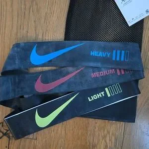 NIKE BRAND LOOP MINI RESISTANCE BANDS, LIGHT, MEDIUM AND HEAVY.