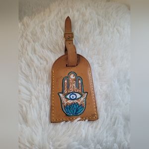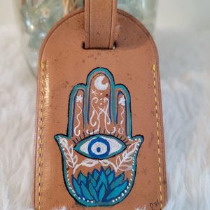 This handpainted luggage tag was painted by me. I have painted for years as a hobby and have some paintings in galleries. The luggage tag is preloved and has been cleaned to the best of my ability without damaging the leather. The leather is a light patina with some marks, which I feel adds to it uniqueness. The tag has been sealed. Please remember this is hand painted. Each one is unique.