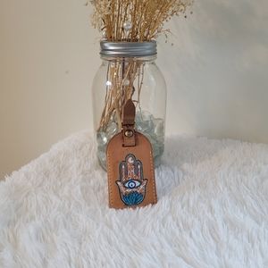 Note: this is a handpainted tag with leather paint. It has been sealed with water resistant sealant. Excessive rubbing may ruin the artwork. it is recommended to be on the outside of an item and may show wear if not properly cared for. More sealant may be required with excessive use.