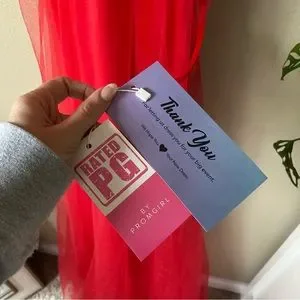 NWT PromGirl Long Open-Back Formal Tulle Prom Dress Red Deep Slit Sides Ballgown Lacey Hem Top. Prom, Wedding, Party, Wedding Guest, etc. Delicate Ribbon Resizable Straps. Size 10. Waist Flat & Armpit to armpit appx 15 inches. Comes from pet free and smoke free home.