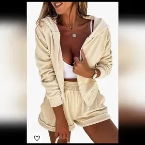 Gorgeous and buttery soft women's size XL sweat set. Jacket 22.5" PtP but stretches. Has a good and zipper closure. Jacket has an elastic band along the bottom. Shorts have side pockets and elastic waistband. 16" laying flat but stretches up to 19". This color and whole outfit is to DIE for!! So comfortable and so cute!!!